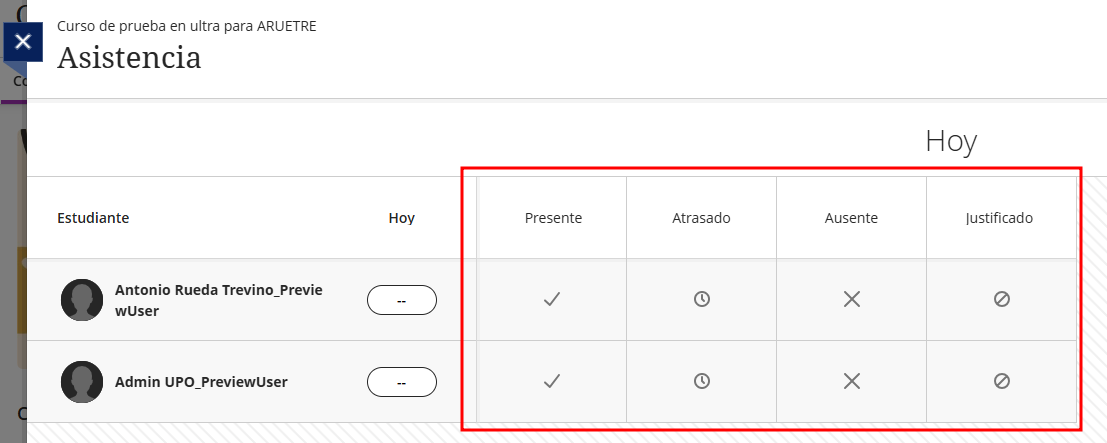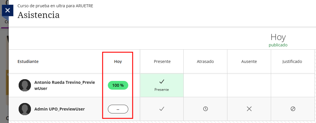 - Atrasado: el estudiante se ha incorporado con retraso.