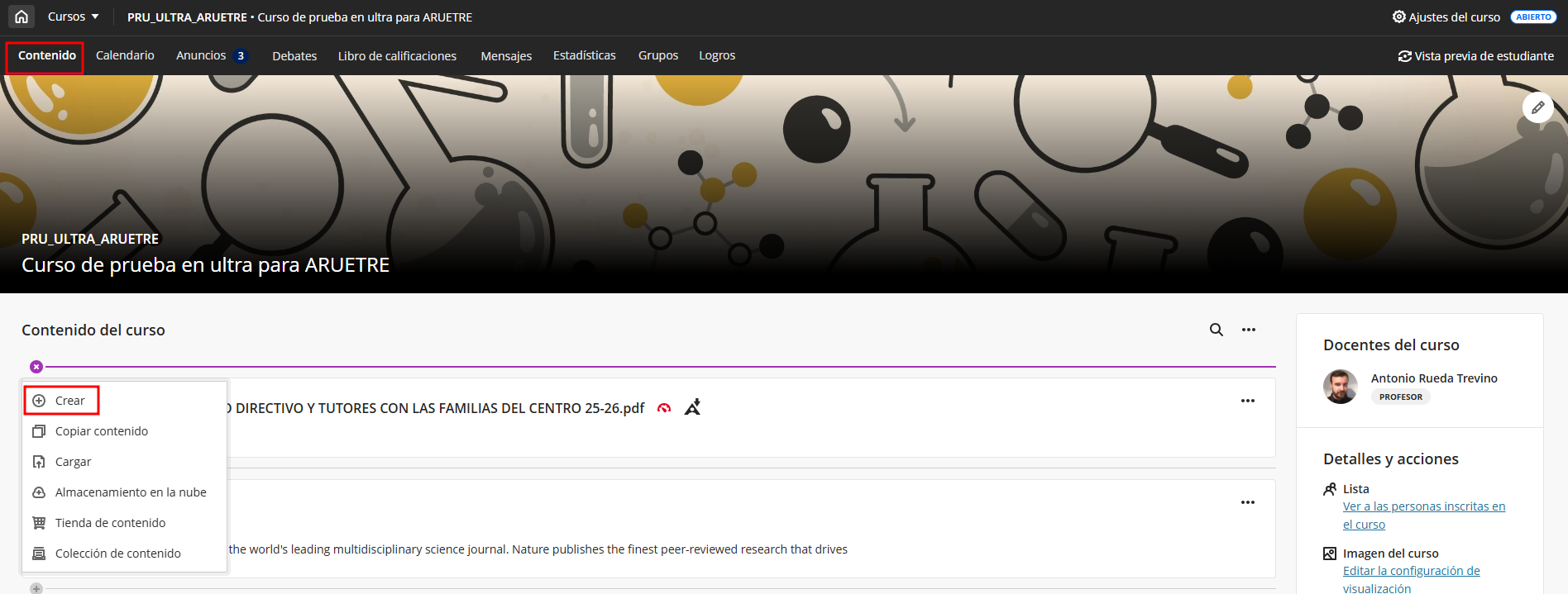 La gestión de contenidos en el Aula Virtual es una de las tareas clave del profesorado, ya que de ella depende la claridad, accesibilidad y organización del aprendizaje del estudiantado.