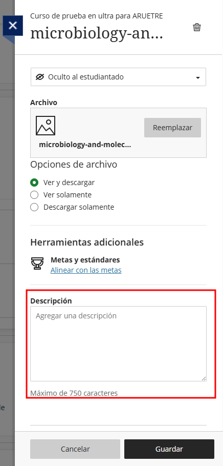 Cuando se sube una imagen al Aula Virtual, el campo Descripción (también llamado texto alternativo o alt text) cumple un papel esencial para garantizar la accesibilidad y la comprensión del contenido.