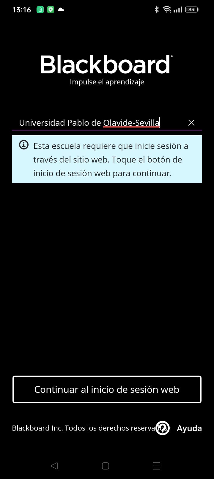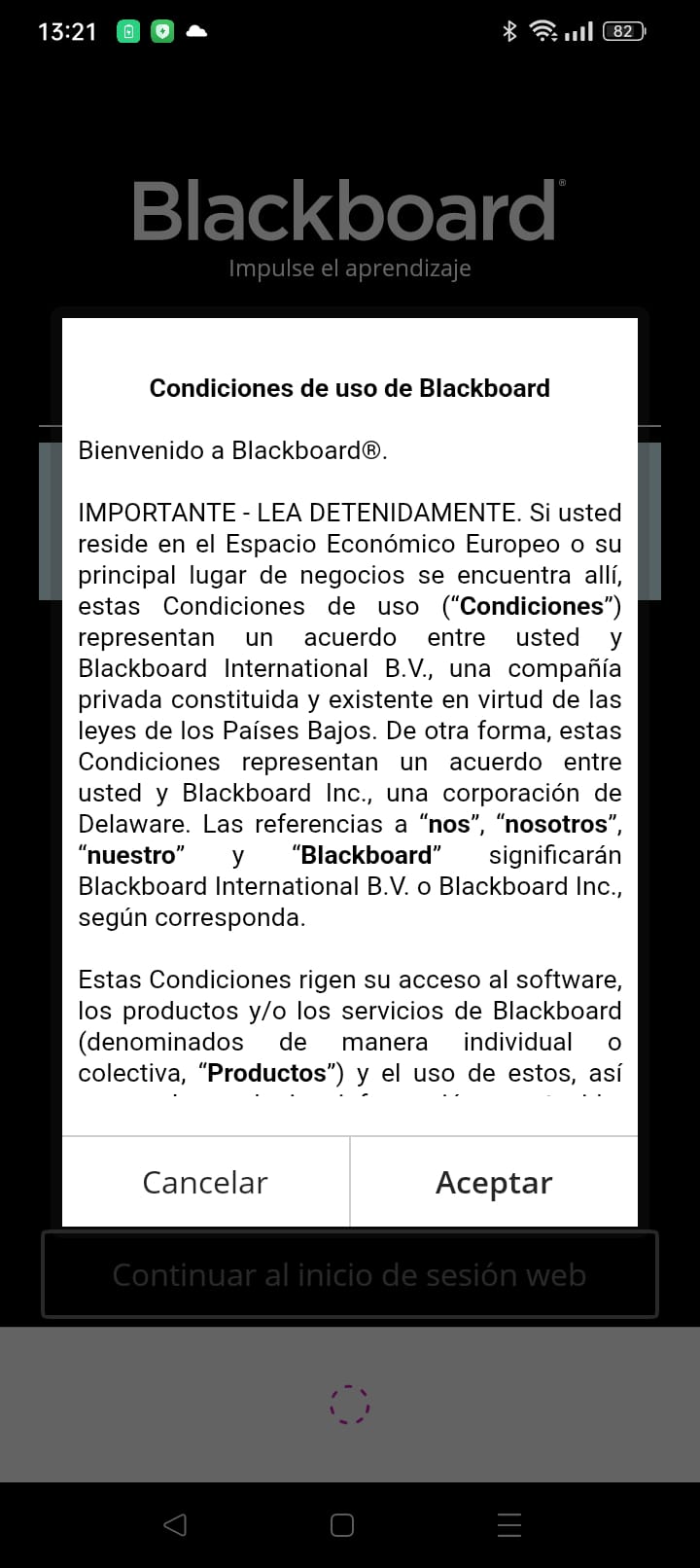 - Acepta las condiciones de uso de Blackboard