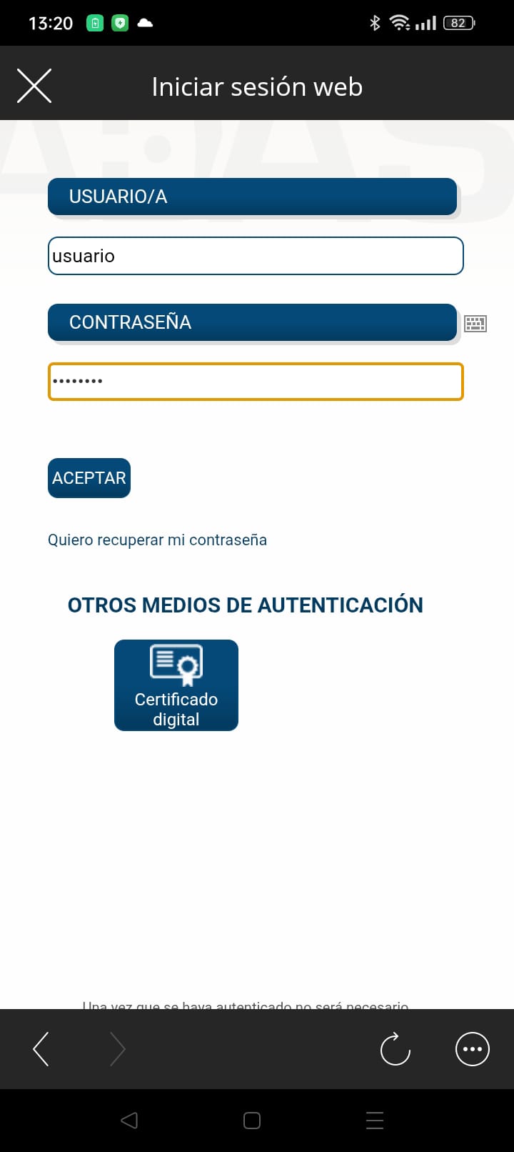 - El acceso funciona igual que en el navegador del ordenador, pero adaptado a la pantalla móvil.