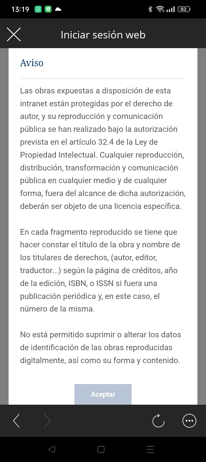 - Acepta el aviso por derecho de autoría.