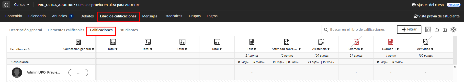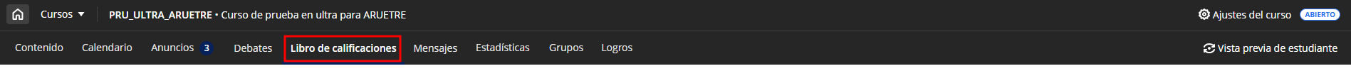 En este tutorial realizaremos un primer contacto con el Libro de Calificaciones en los cursos Ultra del Aula Virtual.