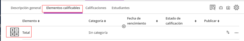 Permite introducir calificaciones, configurar cálculos de notas generales y reorganizar elementos. -