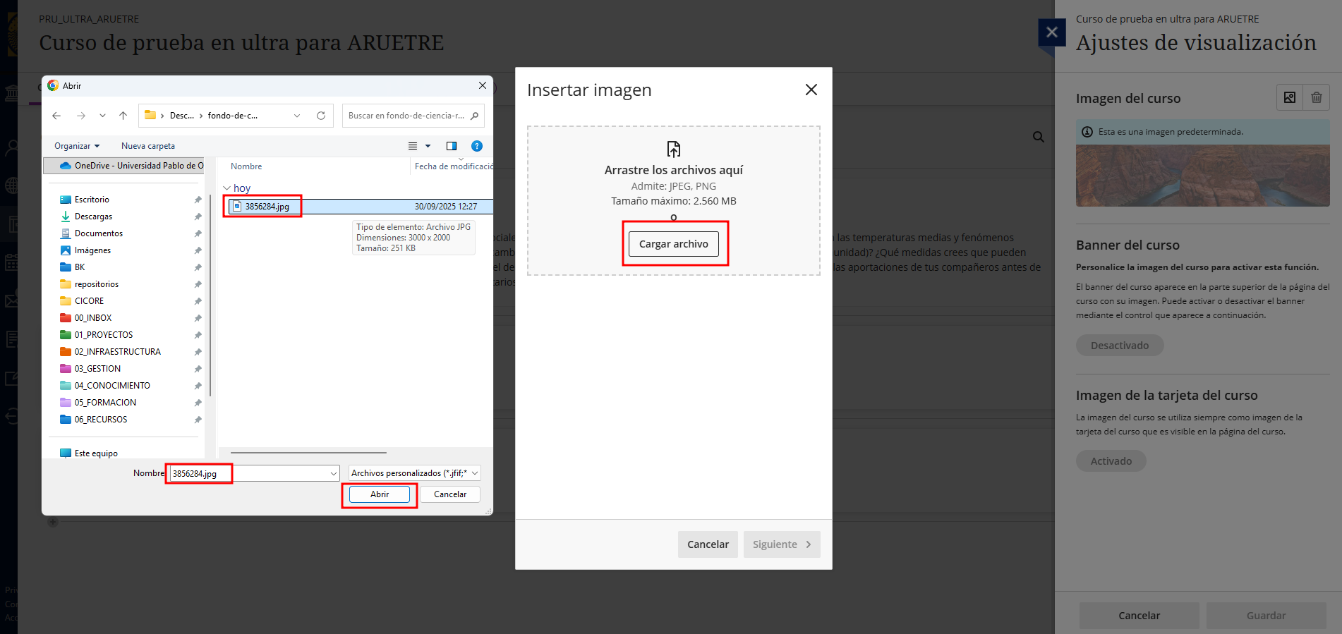El profesorado puede seleccionar una imagen desde su equipo o utilizar un recurso institucional, asegurando que la apariencia del curso sea coherente y atractiva. Una buena elección de imagen contribuye a generar un entorno más personalizado y motivador para el alumnado.