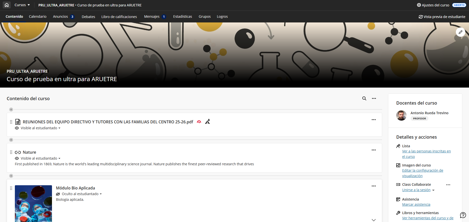 Finalmente, al pulsar sobre Guardar, vemos el resultado aplicado a nuestro curso.