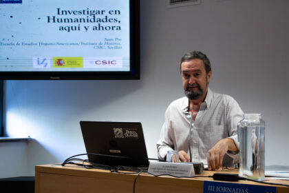 Tras la inauguración, el profesor del Consejo Superior de Investigaciones Científicas Juan Pro Ruiz, ha impartido la conferencia inaugural, ‘Investigar en Humanidades, aquí y ahora’. A continuación, tendrá lugar la presentación y discusión de 40 proyectos de investigación doctorales, y, finalmente, la celebración de una mesa redonda sobre ‘El reto formativo de la publicación científica’, moderada por Cristina Rosillo López y en la que participarán los profesores Francisco Lorenzo; Claudia Rosas Lauro; Elena de la Cova y Alberto Marina Castillo.