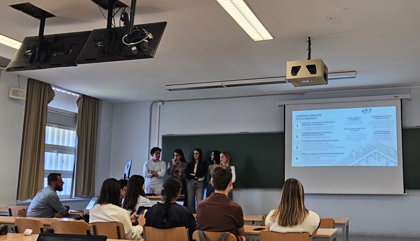 Un primer grupo, compuesto por Laura Gómez, Carolina Sánchez, Dolores Reyes, Paula Gaona y Sergio Jiménez, presentó un Análisis de viabilidad sobre cómo la unificación de SVQ1 y DQA4 es una decisión estratégica sólida, al mejorar la eficiencia, reducir costes y generar valor a largo plazo, siempre que se gestione adecuadamente el impacto humano durante la transición.