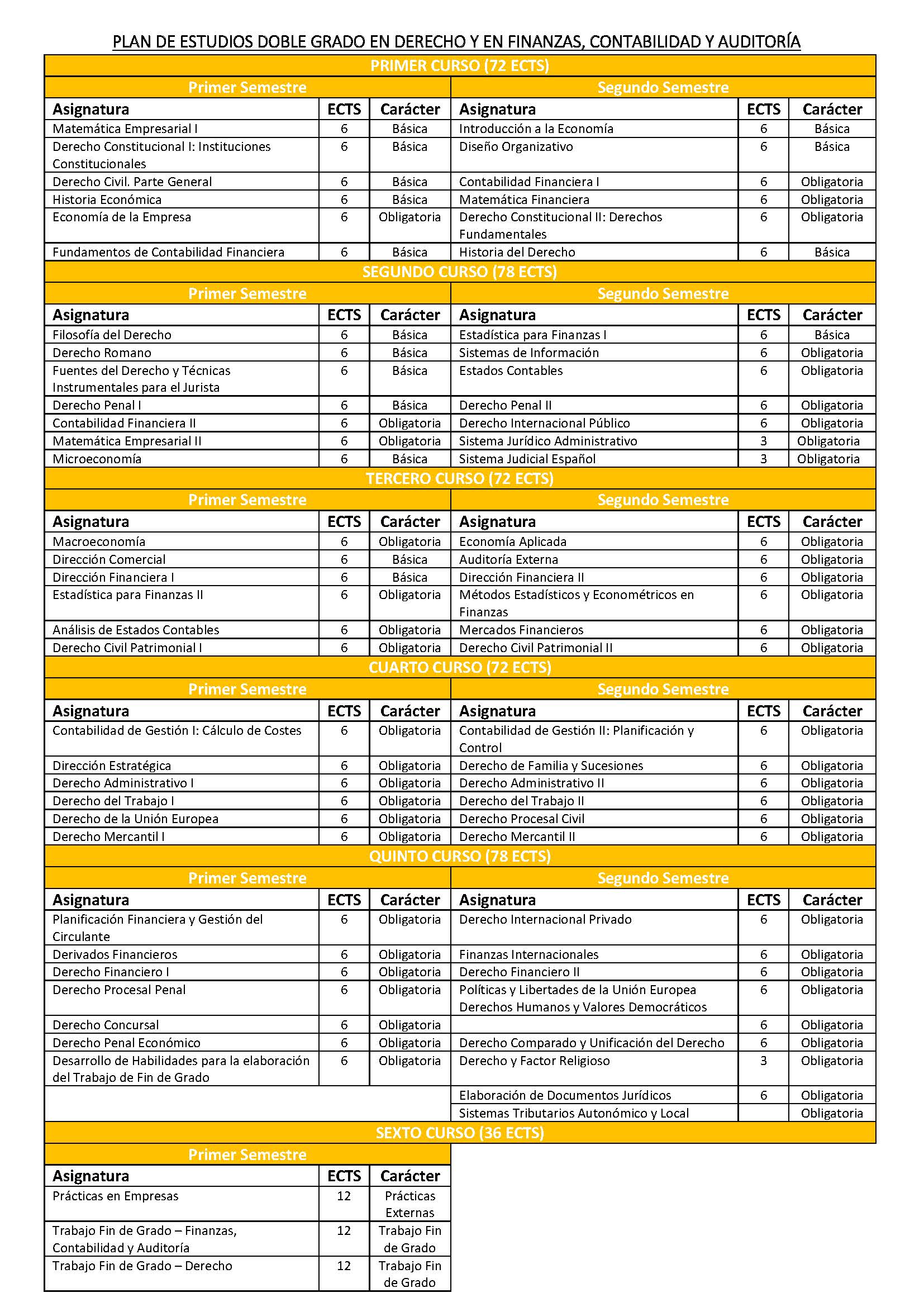 Descargar Pdf Estructura General del Plan de Estudios Descargar Pdf Plan de Estudios del Doble Grado en Derecho y Finanzas, Contabilidad y Auditoría