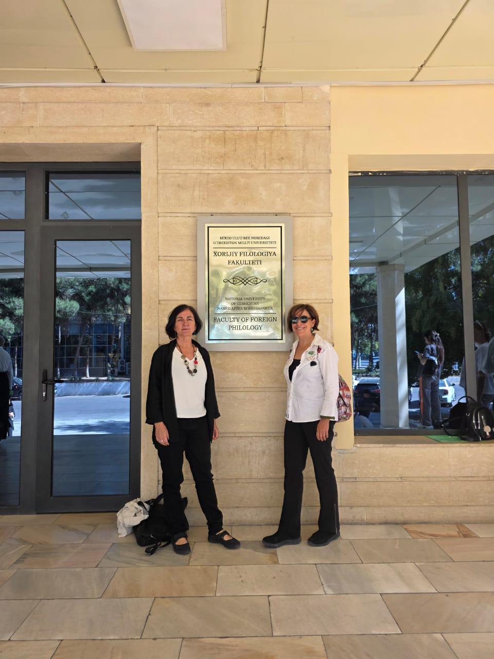 Las profesoras Montserrat Martínez y Sonia Casal, del área de Filología Inglesa, han sido acogidas en la Faculty of Foreign Philology de la National University of Uzbekistan del 18 al 26 de septiembre. La visita, coordinada por la profesora Nilufar Sadullaeva, les ha permitido reunirse con la Vicerrectora de Relaciones Internacionales y compartir muestras de interés para establecer acuerdos de intercambios para los estudiantes de nuestra Facultad. ¡Gracias por hacer de embajadoras!