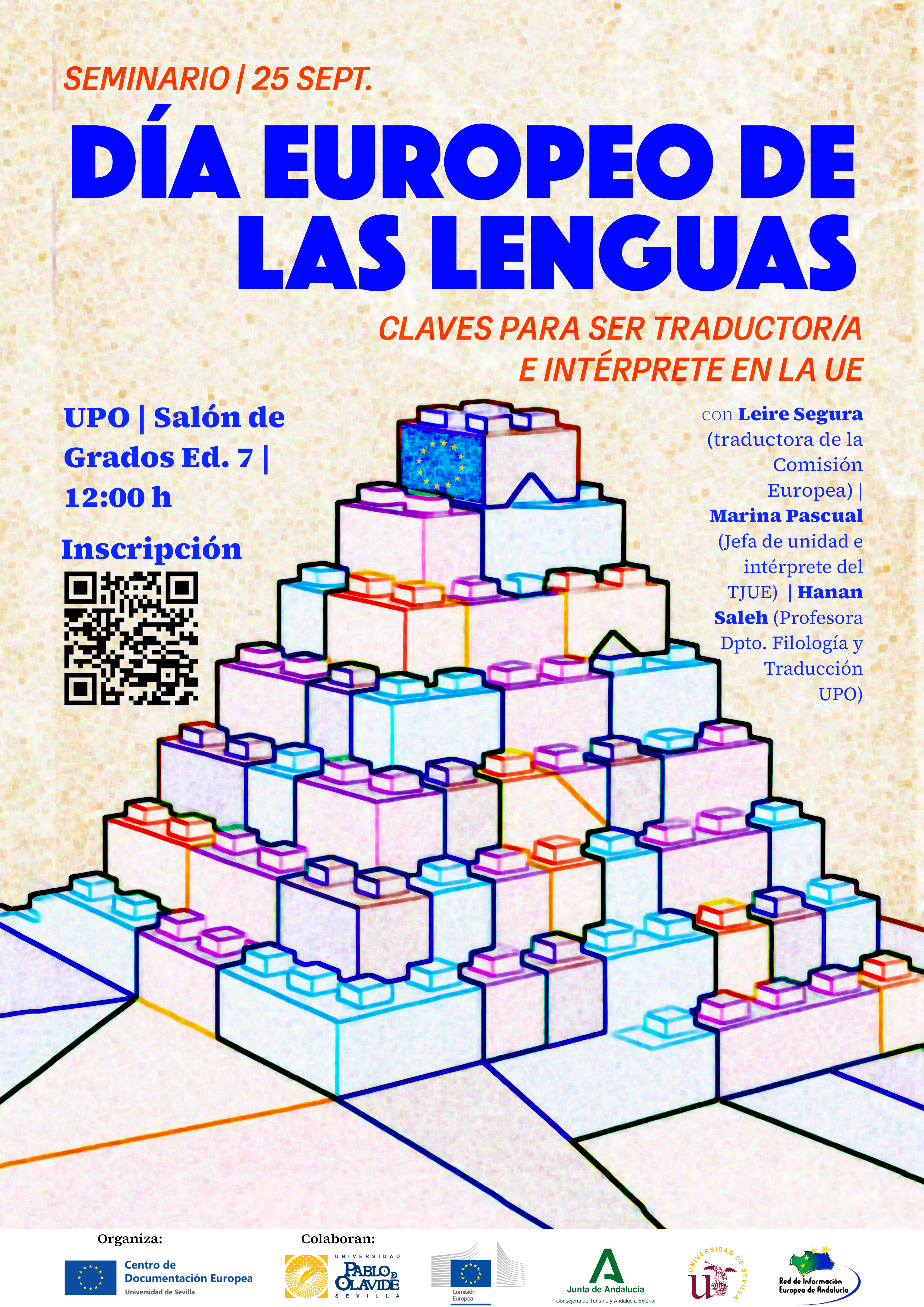 Con motivo del Día Europeo de las Lenguas 2025, el Centro de Documentación Europea de la Universidad de Sevilla, en colaboración con el Departamento de Filología y Traducción y la Facultad de Humanidades de la Universidad Pablo de Olavide, organiza una jornada de actividades con el objetivo de poner en valor la diversidad lingüística y fomentar el conocimiento de las oportunidades profesionales vinculadas a este ámbito en la Unión Europea.