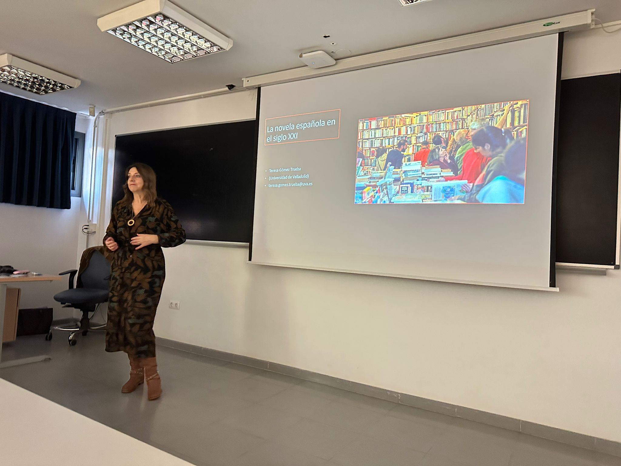 El alumnado de la asignatura Literatura Contemporánea ha tenido la oportunidad de asistir a una interesante sesión impartida por la profesora Teresa Gómez Trueva, de la Universidad de Valladolid, dedicada a la novela española en el siglo XXI.