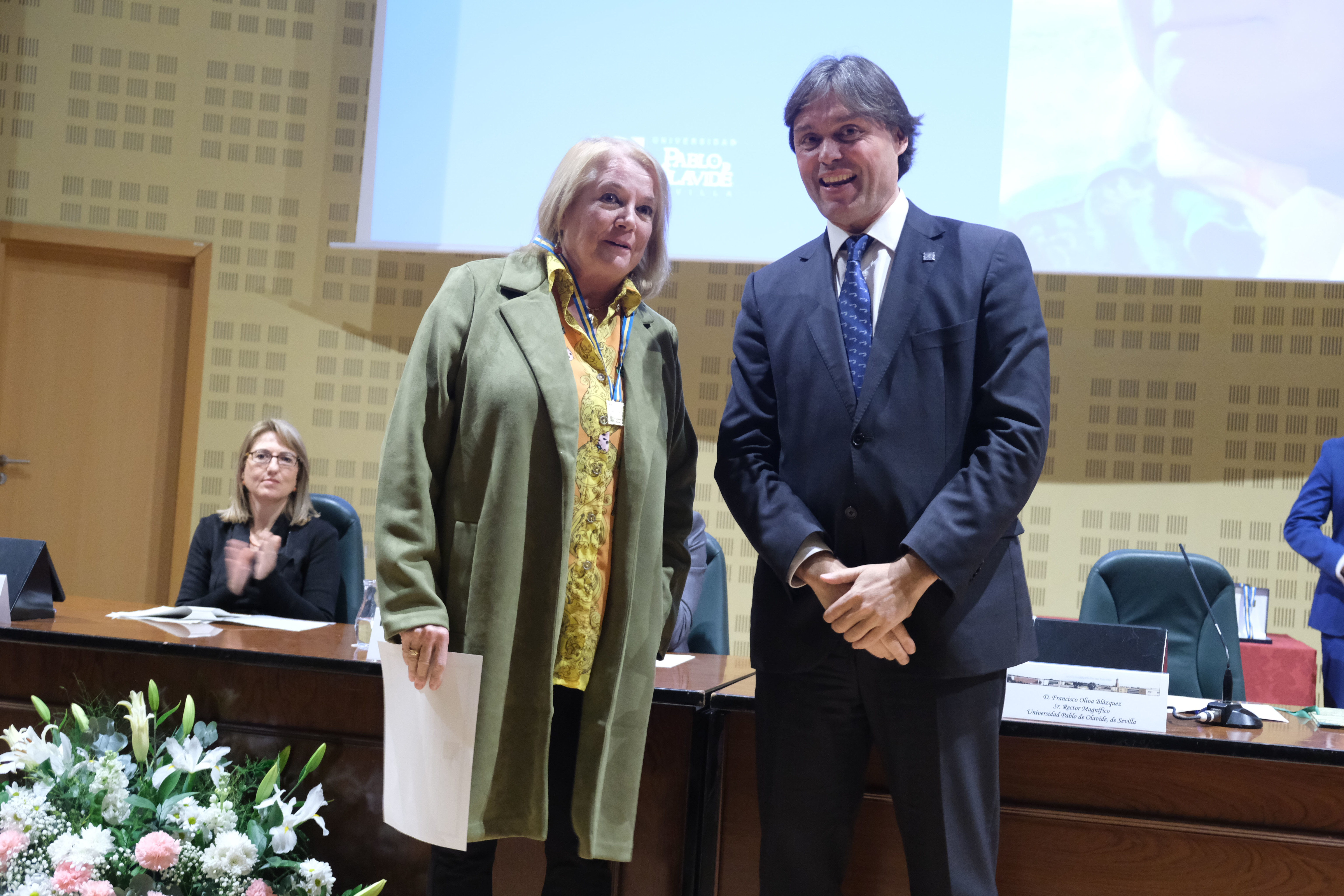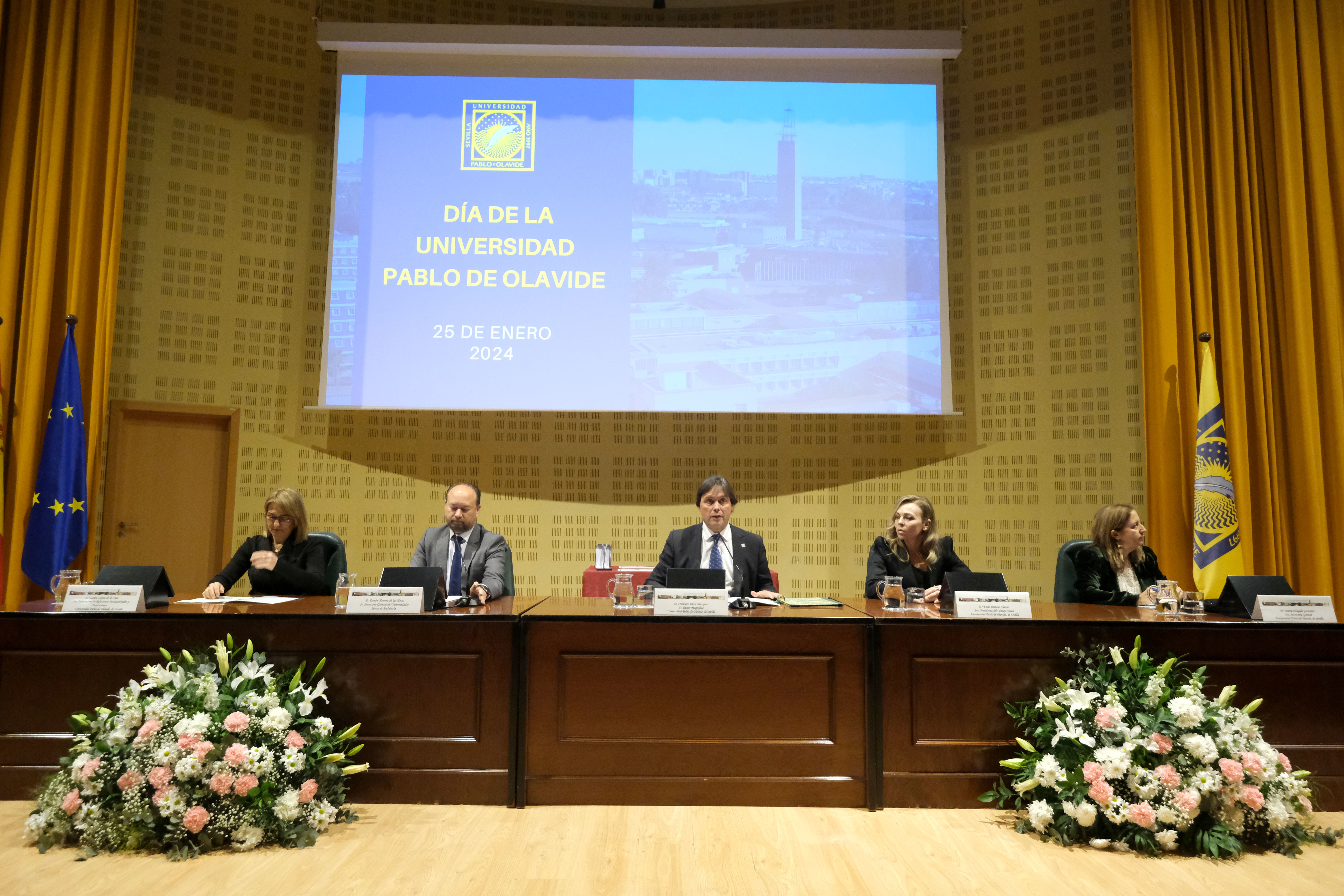 23/01/2025. En el Día de la Universidad Pablo de Olavide, se ha celebrado una jornada de reconocimiento hacia la labor investigadora de su PDI, así como de la actividad docente y de gestión realizada por su profesorado y por su personal técnico y de administración (PTGAS).