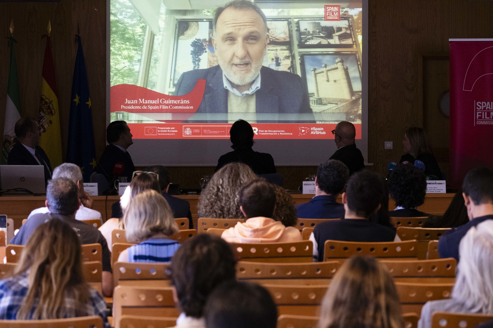 23/10/2024. Spain Film Commission y la Universidad Pablo de Olavide (UPO) han presentado la Cátedra de Industria de los Rodajes. D. Antonio Sanz Cabello, consejero de la Presidencia, Interior, Diálogo Social y Simplificación Administrativa de la Junta de Andalucía, clausuró la presentación.