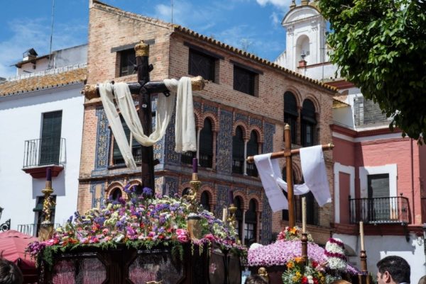 Esta mezcolanza entre religión y diversión presenta una cara diferente y peculiar en la localidad sevillana de Carmona que, cada 1 de mayo, acoge en sus calles pequeños pasos con la Santa Cruz engalanada y pequeños altares portátiles presididos por una imagen de la Virgen María.