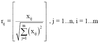 1º Especificación de la matriz de respuestas o matriz de decisión: partiendo de un conjunto X de m alternativas y un conjunto J de n criterios, se construye una matriz X cuyos elementos xij representan las evaluaciones de la alternativa i (i = 1,2,...m) respecto del criterio j (j = 1,2,…n):