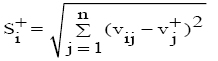 6º Cálculo de las medidas de distancia de cada alternativa i al ideal positivo:
