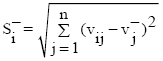 7º Cálculo de las medidas de distancia de cada alternativa i al ideal negativo: