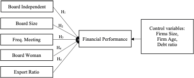 The problems in this study are as follows: (1) Do independent commissioners have a positive influence on the performance? (2) Does the size of the board of commissioners have a negative influence on the performance? (3) Does the frequency of commissioners’ meetings have a negative influence on the performance? (4) Does the proportion of female commissioners have a positive influence on the performance? (5) Does the export ratio have a positive influence on the performance?