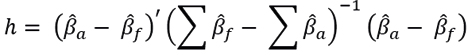 = (b-B)’[(V_b-V_B)^(-1)](b-B) |