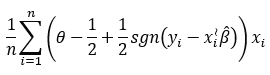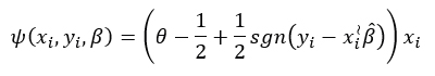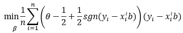 Donde ρθ (λ)=(θ-I(λ<0)), λ es la función de verificación e I(∙) es la función indicadora habitual. El problema de regresión cuantílica anterior se puede reescribir como: