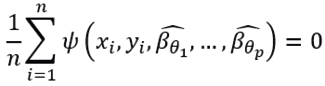 La validez de ψ(∙) en (5) como una función de momentos se cumple bajo la condición de regularidad E[ψ(xi,yi,βθ )]=0. En el marco de GMM se puede, en condiciones de regularidad, establecer consistencia y normalidad asintótica de