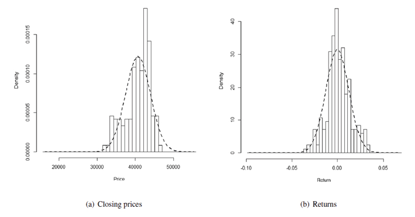 In the case of constant volatility to describe the risk of an asset, the normal distribution has been considered as a candidate to describe the returns and thus construct the likelihood function to calculate the a posteriori distribution. However, other possible distributions could be considered as the series generally behave as leptokurtic or with heavy tails. As possible future work, the Laplace or GED generalized distribution could be considered to describe the return series.