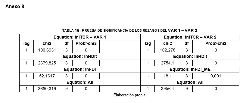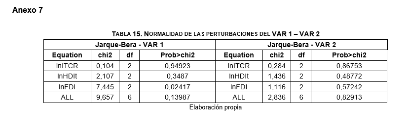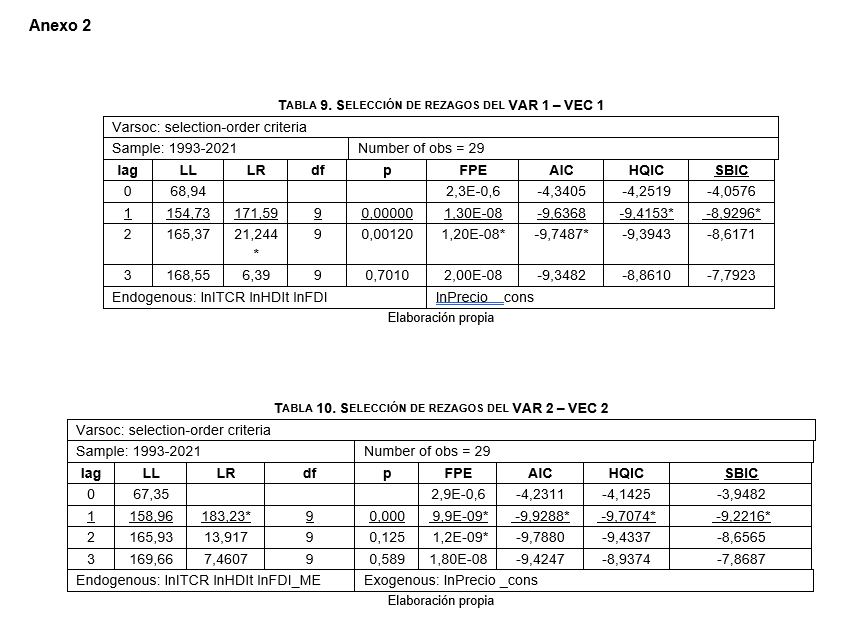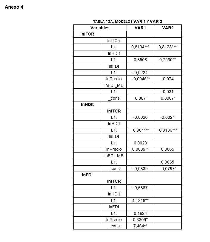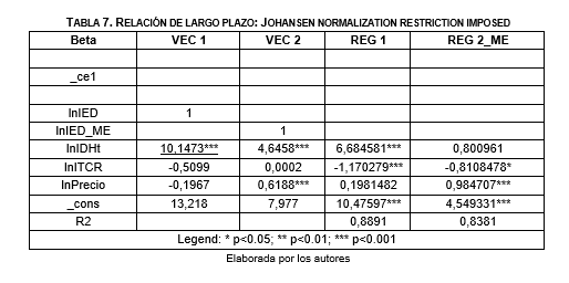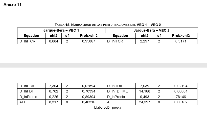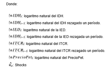 El propósito principal de esta investigación fue el de analizar la relación entre la Inversión Extranjera Directa (IED) total y el sector minero energético en el desarrollo humano en Colombia de 1990 al 2021, por medio de la estimación de dos Vectores Autorregresivos -VAR- que dieron cuenta de la relación de causalidad de las variables. El primer vector tuvo en cuenta la IED total, mientras que el segundo se ocupó de la IED del sector minero energético que para del 2003 al 2010 representó, en promedio, un 55% de la IED total, siendo el año cumbre el 2010, cuando alcanzó el 76% de la misma. Además, se estimaron dos Vectores de Corrección de Error -VEC- como prueba de robustez que confirmaron los resultados obtenidos. En las dos estimaciones se tuvieron en cuenta como variables endógenas el Índice de Desarrollo Humano (IDH), la Inversión Extranjera Directa (IED) y el Índice de Tasa de Cambio Real (ITCR), mientras que los precios del petróleo referencia WTI a precios 2015 se consideraron exógenos. Como resultado se encontró que fue el IDH el que causó a la IED total, en el sentido de Granger, mientras que para la IED minero energética no se encontró significancia. De esta manera, un aumento en un 1% del IDH generó un incremento del 10,15% en la entrada de IED total.