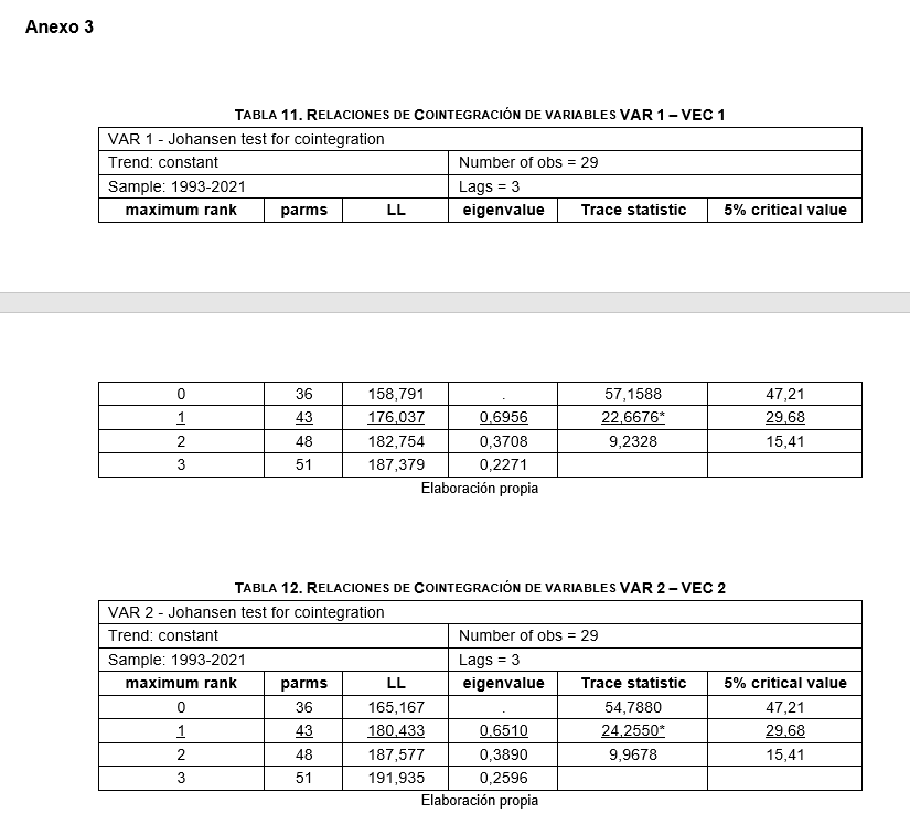 Johansen, S. (1991). Estimation and hypothesis testing of cointegration vectors in Gaussian vector autoregressive models. Source: Econometrica, 59(6), 1551-1580. https://doi.org/10.2307/2938278