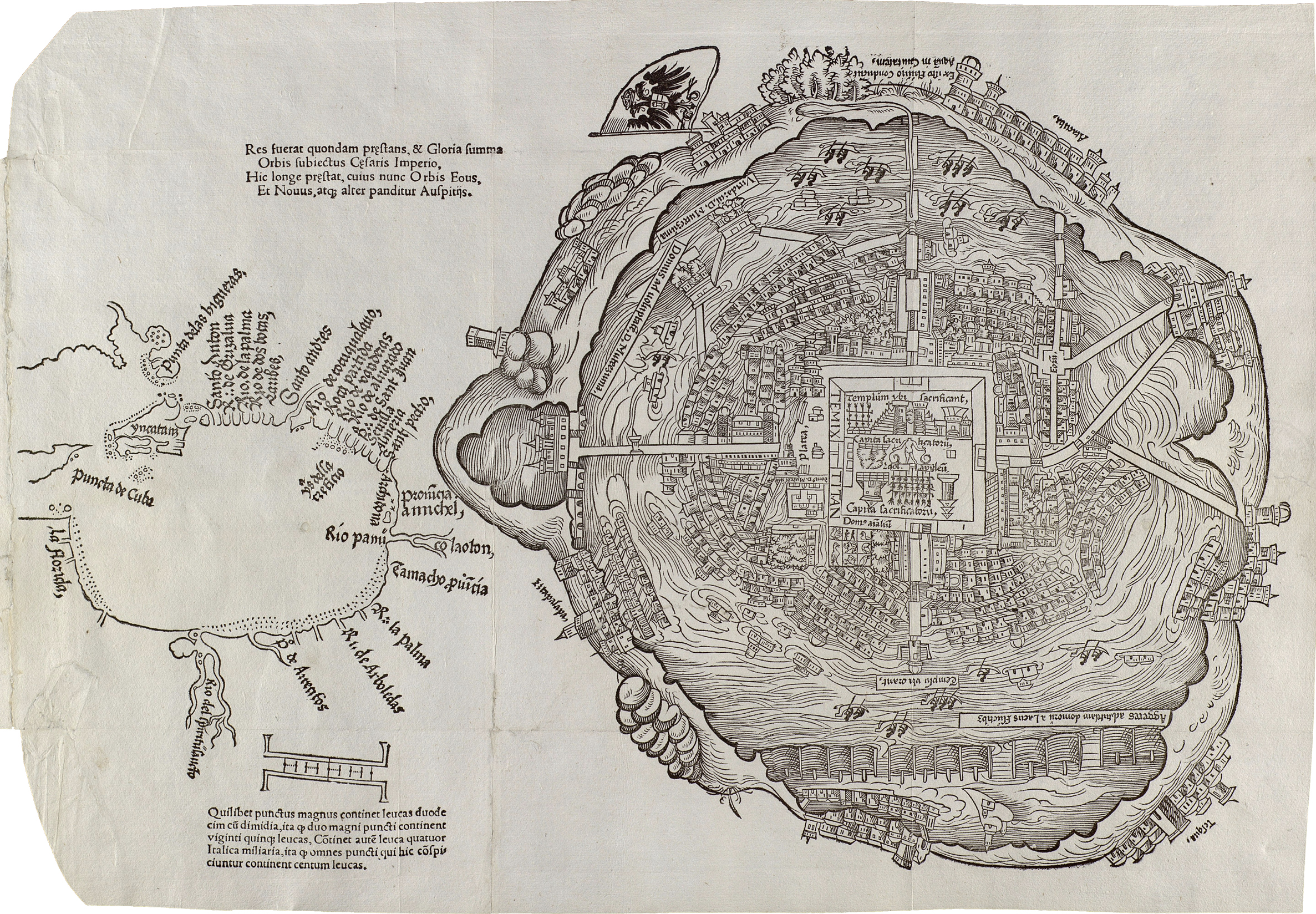 Plano de Tenochtitlan Dieta de Nuremberg 1524 Martin Plinius Jacobo Cromberger Johannes von Revellis Imagen indígena |