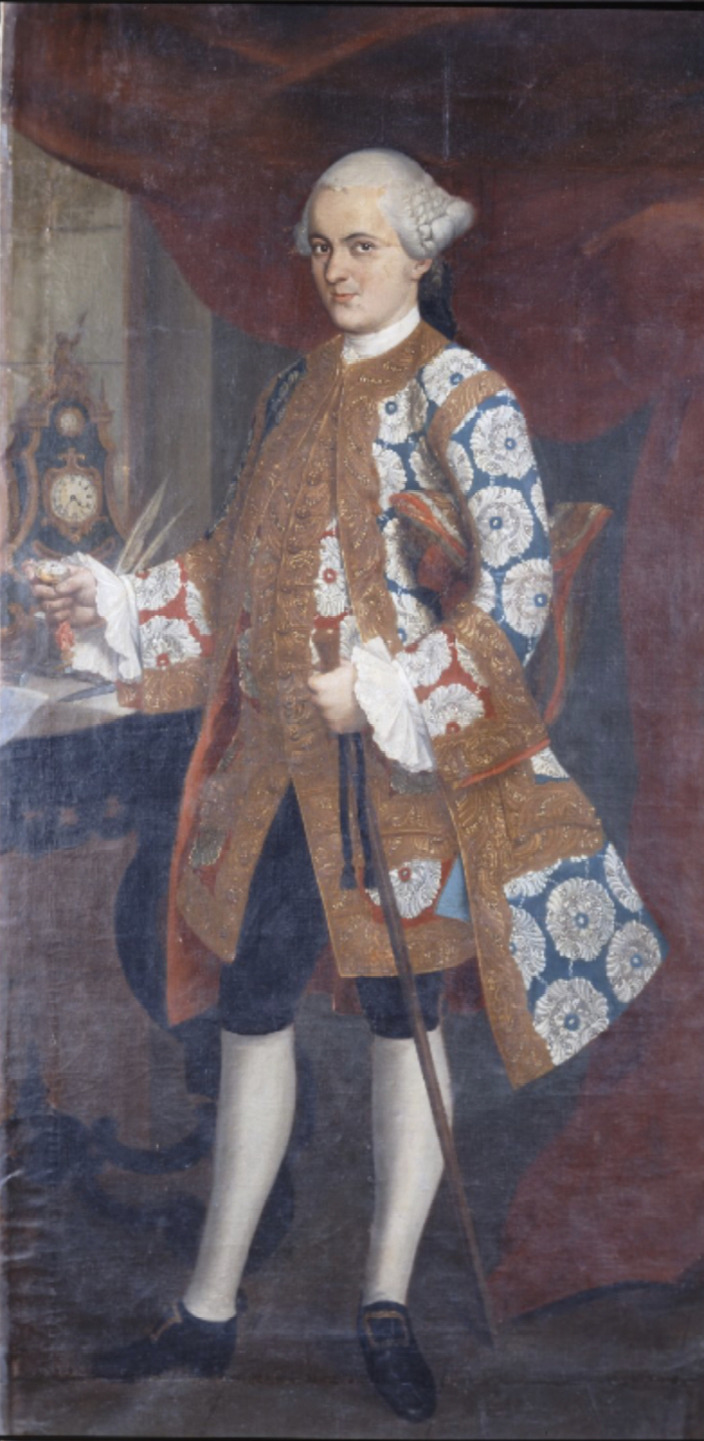Fig. 1. Juan Patricio Morlete Ruiz, Retrato de personaje con relojes, 1760-1765. Instituto Nacional de Antropología e Historia de México.