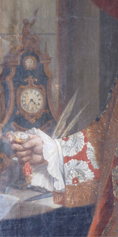 Fig. 2. Detalle de Juan Patricio Morlete Ruiz, Retrato de personaje con relojes, 1760-1765. Instituto Nacional de Antropología e Historia de México.