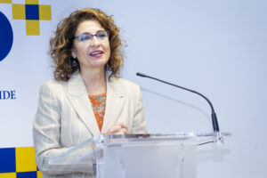 La ministra de Hacienda y Función Pública, María Jesús Montero Cuadrado, ha ofrecido una conferencia a alumnado de las Facultades de Derecho y Ciencias Empresariales de la Universidad Pablo de Olavide bajo el título ‘Los retos de la universidad pública en un nuevo modelo económico’ que ha sido presentada por el rector, Francisco Oliva Blázquez. En su intervención, ha destacado el papel de las universidades públicas como “elemento fundamental para el futuro de cualquier sociedad que quiere progresar”.