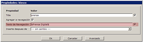 Título y metadatos. El título de la página es fundamental para que esta sea identificada y bien posicionada en buscadores. El título de cada página se compone de dos partes: el general del sitio y el de la sección en la que nos encontramos. El primero forma parte de la plantilla y el segundo refleja el texto de navegación que hemos dado al directorio donde está situada la página.