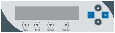 Es un panel con unas funciones muy intuitivas, se muestran dos líneas con 20 caracteres cada una y 8 botones que te describimos a continuación: