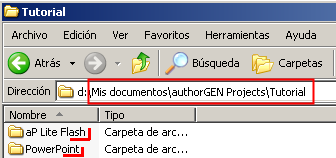 Automáticamente, authorPoint Lite crea una carpeta en la siguiente ruta: Mis Documentos / authorGEN Projects, y dentro de esta carpeta se almacenan los proyectos que vayas creando.