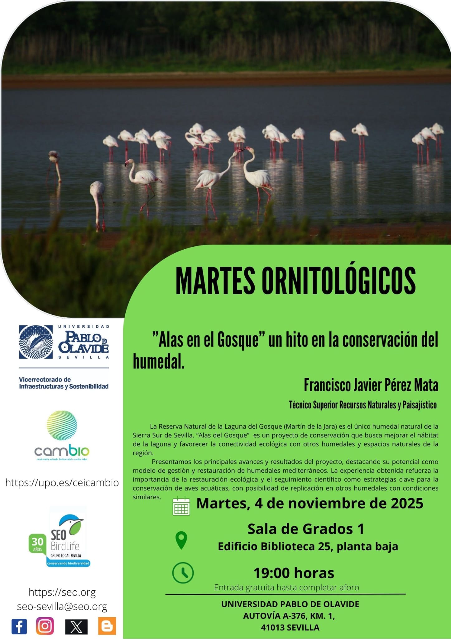 Contaremos con la ponencia de Francisco Javier Pérez Mata, Técnico Superior de Recursos Naturales y Paisajístico de la Reserva Natural de la Laguna del Gosque (Martín de la Jara). La Laguna del Gosque es un importante humedal natural de la Sierra Sur de Sevilla, y este proyecto de conservación busca mejorar el hábitat de la laguna y favorecer la conectividad ecológica con otros humedales y espacios naturales de la región.