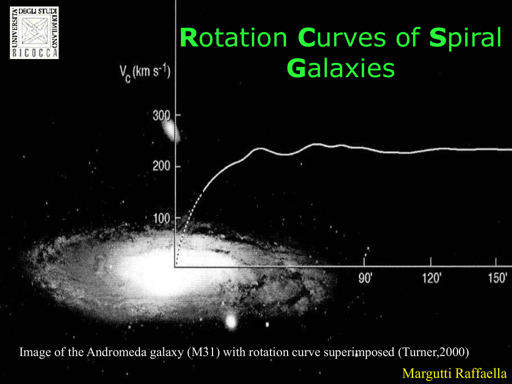 Me centraré a continuación en la evidencia disponible a la escala más pequeña hasta la fecha, la escala de las galaxias. Las curvas de