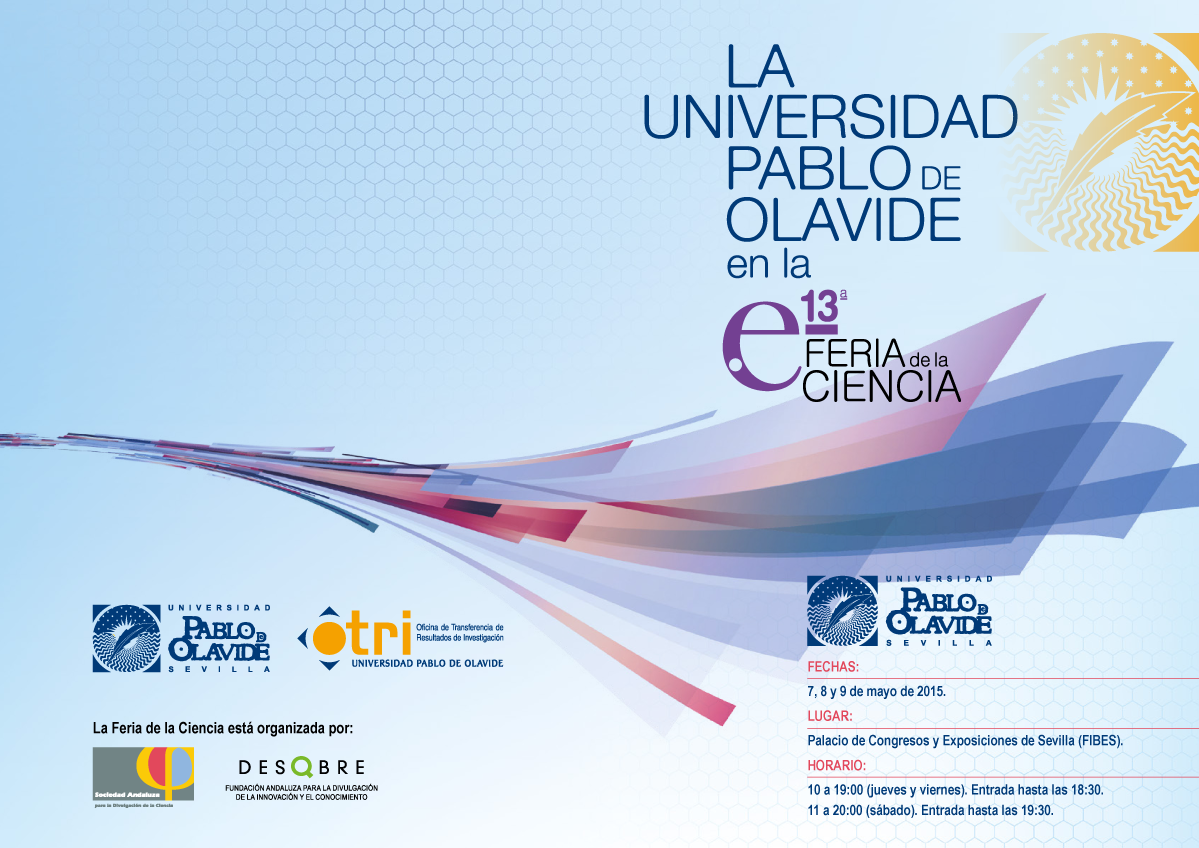 La Universidad Pablo de Olavide participará en la 13ª Feria de la Ciencia que se celebrará los días 7, 8 y 9 de mayo en el Palacio de Exposiciones y Congresos de Sevilla (FIBES), con un stand coordinado por el Vicerrectorado de Investigación y Transferencia de Tecnología, a través de su Oficina de Transferencia de Resultados de Investigación (OTRI).