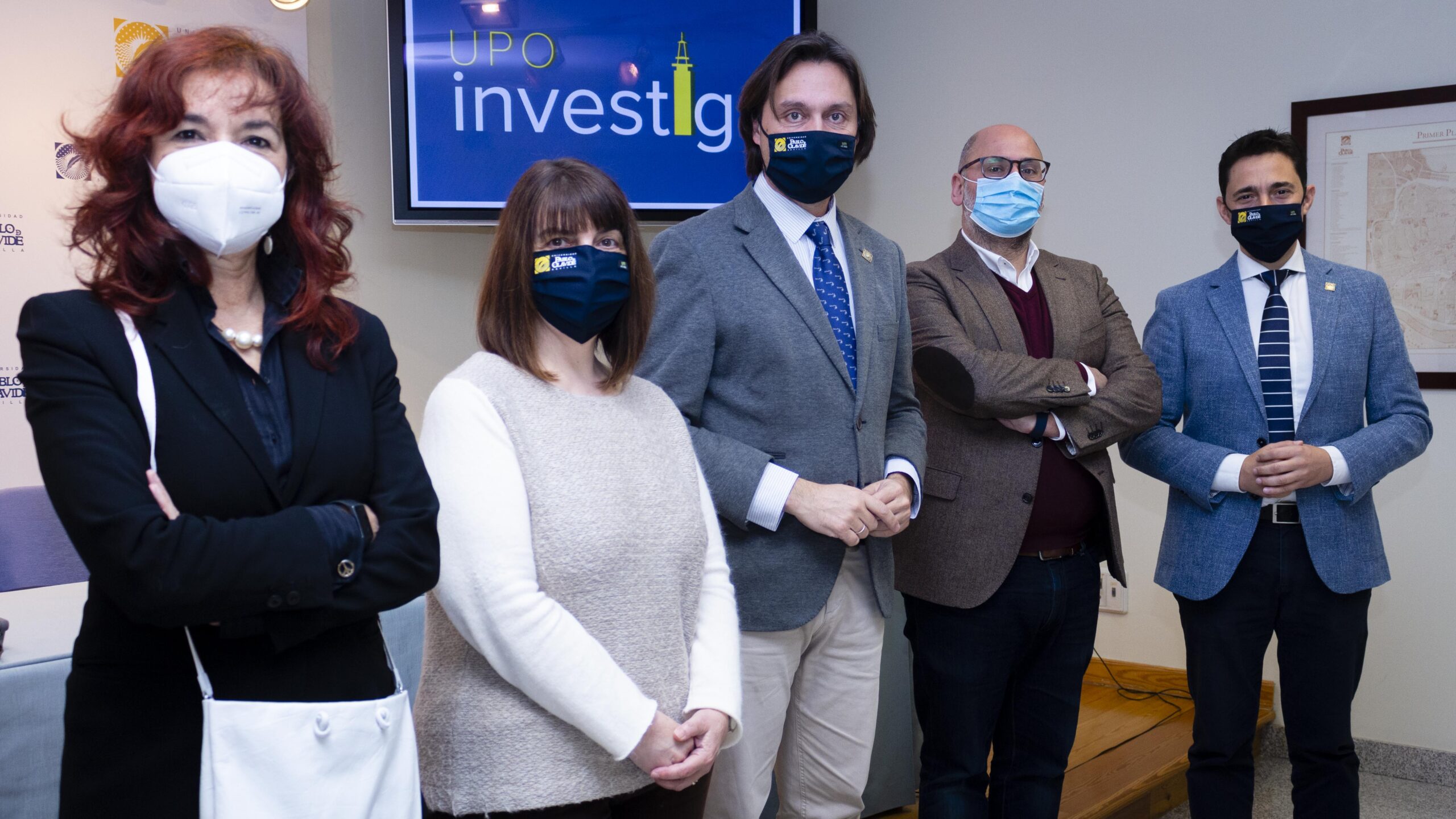 El rector de la Universidad Pablo de Olavide, Francisco Oliva, ha presentado hoy UPOinvestiga, un nuevo portal que ofrece información pormenorizada de la producción científica llevada a cabo por el profesorado de la UPO. El nuevo portal permite también consultar de forma gráfica y sencilla los resultados de investigación agregados por departamentos, áreas de conocimiento y grupos de investigación. Antonia Jiménez, vicerrectora de Investigación, Transferencia y Doctorado; Raúl Giráldez, vicerrector de Transformación Digital y Calidad; y Rocío Fernández, directora de la Biblioteca/CRAI de la UPO, han asistido también a la presentación de este proyecto que mejora la transparencia sobre los resultados obtenidos en el ámbito de la investigación, así como la digitalización de la gestión universitaria.