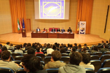 En su intervención, Francisco Oliva ha subrayado la trascendencia que las ‘fake news’ tienen en la sociedad actual y cómo estas afectan a la democracia. “Se habla de la universidad como un lugar de conocimiento, pero su principal tarea es hacer ciudadanos y ciudadanas libres y, hoy en día, a través de las nuevas tecnologías, es fácil manipular a las personas”, ha señalado. Así, ha remarcado a los y las estudiantes que “vuestro esfuerzo es desarrollar un espíritu crítico para tener una vida plena y libre además de una profesión”. Finalmente, ha agradecido al profesorado “que participa incentivando este tipo de actividades” y ha felicitado al alumnado “porque es un orgullo teneros como estudiantes de la UPO”.