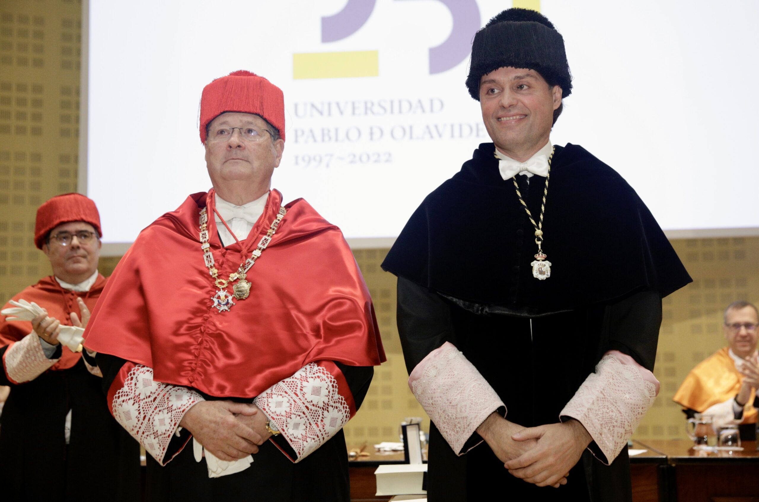 En su intervención, el rector ha recordado que este acto estaba previsto para marzo de 2020, justo unos días antes de que se decretase el Estado de Alarma a causa de la pandemia por Covid-19, pero se ha congratulado de que “hoy podemos celebrar como se merece la investidura del profesor Víctor Moreno Catena como Doctor Honoris Causa de la Universidad Pablo de Olavide”.