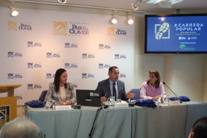 La Universidad Pablo de Olavide ha presentado esta mañana la X edición de su Carrera Popular, que se celebrará el domingo 19 de abril a las 11:00 horas en su campus. Este evento deportivo y solidario se celebra un año más como una jornada festiva en la que la comunidad universitaria y vecinos de Sevilla pueden participar y disfrutar de un día saludable en el campus universitario y contribuir a una causa social. En esta ocasión, la recaudación de la Carrera contribuirá a la labor que realiza la Asociación Crecer con Futuro.
