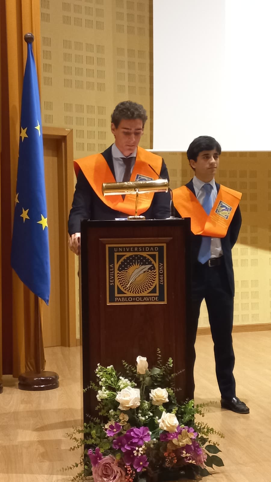 En representación del alumnado egresado, pronunció el discurso Manuel Bueno Sebastián y Luis Gómez Navarro. Un total de 67 egresados y egresadas han asistido, junto a sus familiares, a este acto con el que la Universidad Pablo de Olavide recupera una antigua tradición de las universidades europeas.