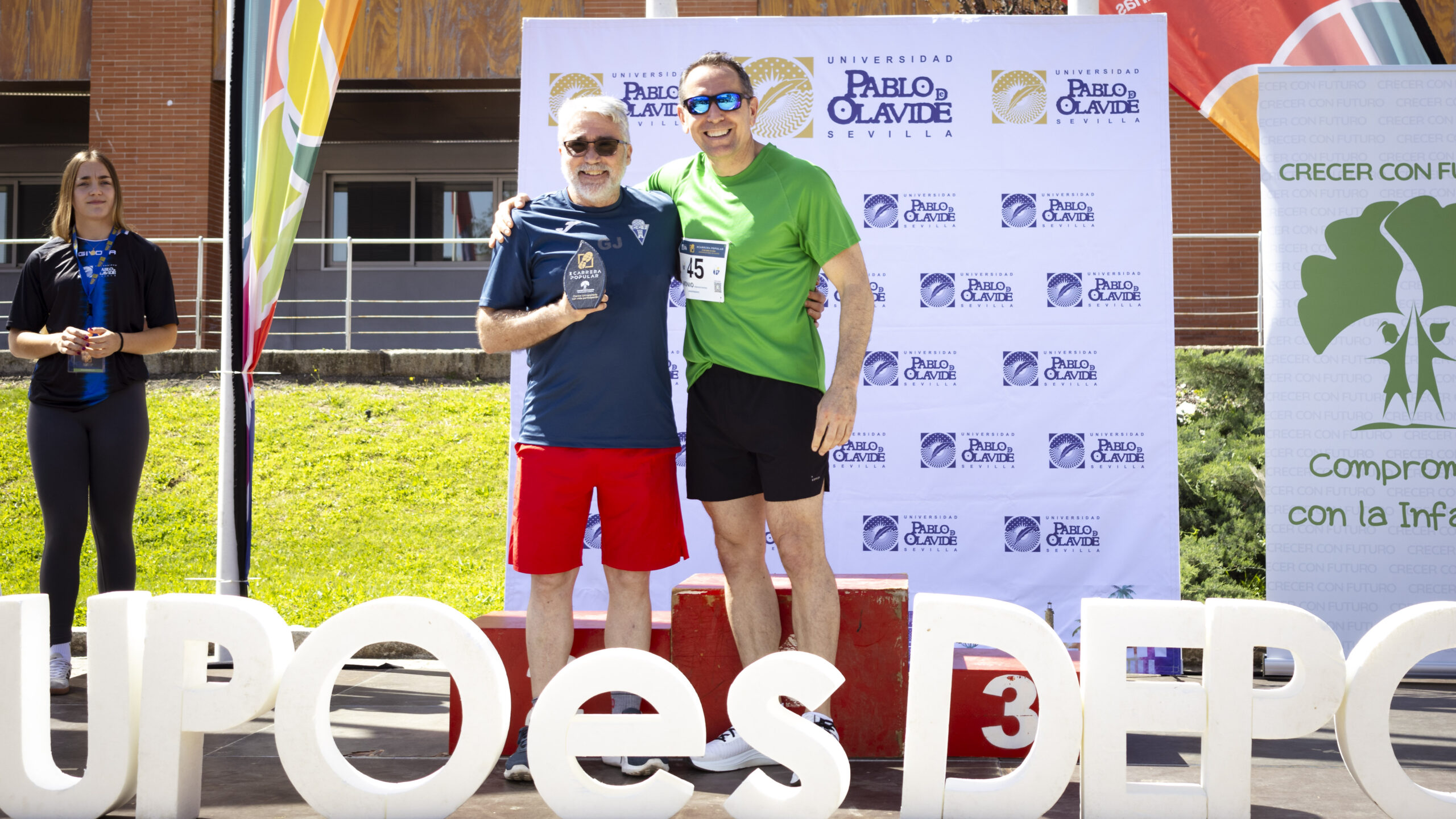 La carrera ha mantenido en esta décima edición su marcado carácter solidario, ya que un euro de cada inscripción se ha destinado a la asociación Crecer con Futuro, entidad beneficiaria también de la modalidad Dorsal 0, concebida para quienes desean colaborar con la causa sin participar en la prueba. La iniciativa refuerza así el compromiso de la Universidad Pablo de Olavide con la promoción de hábitos de vida saludables, la convivencia y la implicación social.