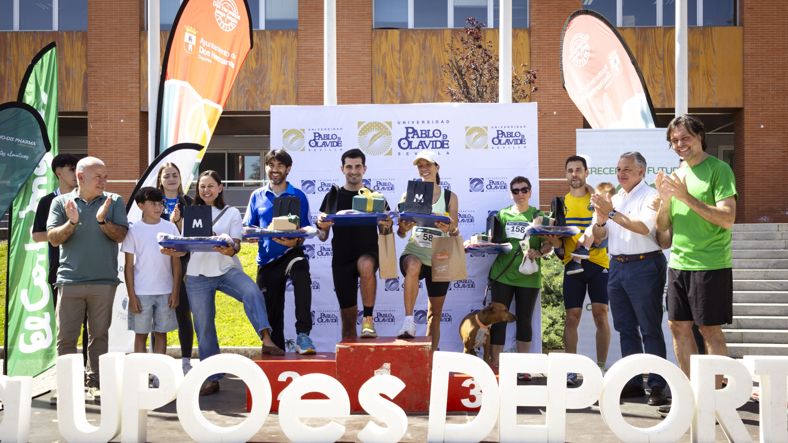 La X Carrera Popular, organizada por la Universidad Pablo de Olavide, ha contado con el patrocinio del Ayuntamiento de Dos Hermanas y la colaboración de entidades y empresas como Metro de Sevilla, el Consejo Social de la UPO, Mercasevilla, El Corte Inglés, Serenísima, Coca-Cola, Cruzcampo, Bio-Dis Pharma Laboratorios, Círculo Porvenir C.D., Panadería Artesanal Obando, Panceliac, Diario de Sevilla, SER Radio Sevilla, ERREA, Centro Deportivo Charate y Costco Wholesale.
