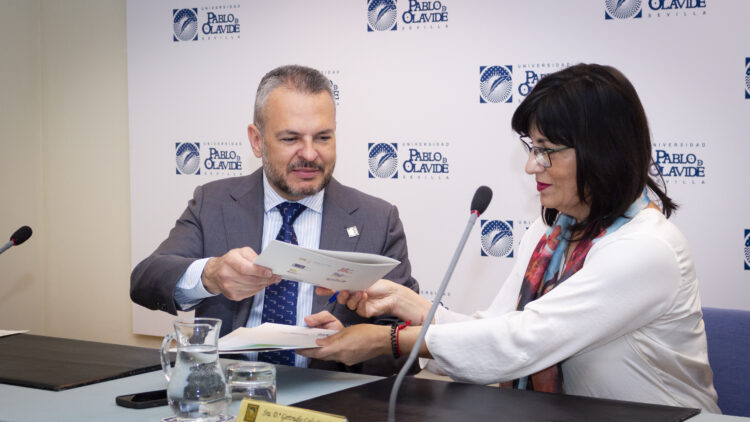El vicerrector de Cultura y Políticas Sociales de la Universidad Pablo de Olavide, David Cobos Sanchiz, y la presidenta de la Asociación Asperger TEA Sevilla, Gertrudis Gala Sánchez, han ratificado esta mañana el protocolo de colaboración entre ambas entidades para el desarrollo de acciones conjuntas en las áreas formativa, de investigación y actividades prácticas dirigidas a estudiantes.
