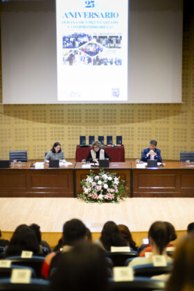 Por su parte, Armando Rotea ha incidido en la condición de “pionera y todo un referente en el Voluntariado en Andalucía” de la Oficina de la Olavide. “Tanto en la Plataforma de Sevilla, como en la andaluza, fuimos testigos de la apuesta que la UPO hizo de la acción voluntaria desde un primer momento”. El presidente de la Plataforma Andaluza de Voluntariado, que también cumple 25 años, ha resaltado la importancia que tiene que una universidad forme voluntarios “de presente y de futuro”, y ha definido la acción voluntaria como “dejar de mirarse uno mismo y mirar a otras personas. Todos podemos pasar a estar en una situación de necesidad”.