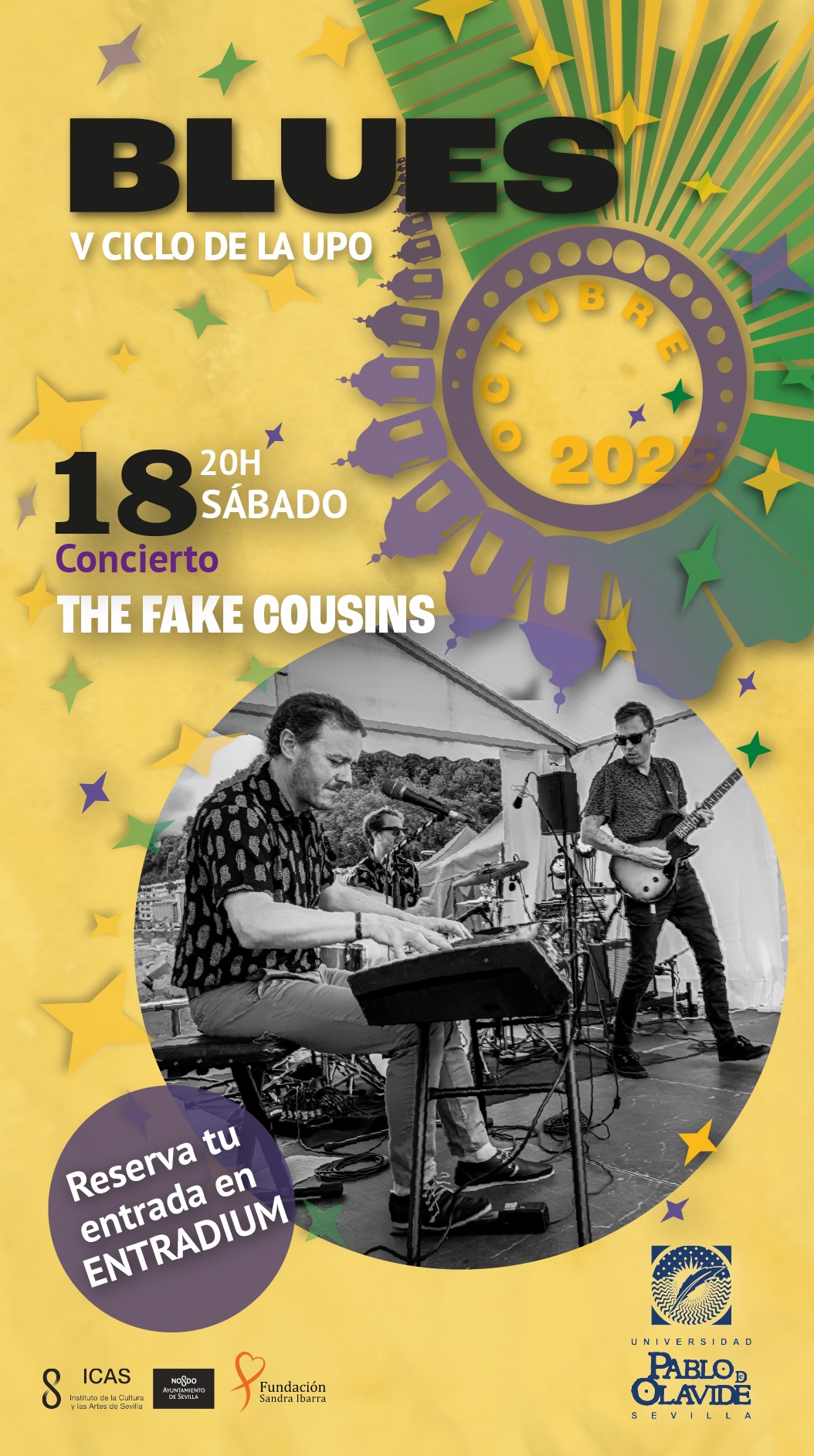 V CICLO DE BLUES DE LA UPO. Del 16 al 18 de octubre. Real Fábrica de Artillería.En su primer lustro, el V Ciclo de Blues de la Universidad Pablo de Olavide se traslada a la Real Fábrica de Artillería. Entre el jueves 16 y el sábado 18 de octubre Mingo Balaguer & Kid Carlos Blues Band, Txako & Sanpa y The Fake Cousins llenarán de música desde las 20 horas este espacio cultural. Organizado en colaboración con el Instituto de la Cultura y las Artes de Sevilla (ICAS), la reserva de entradas, gratuita, se realiza a través de la web ENTRADIUM y tendrán validez hasta quince minutos antes de que comience el concierto.