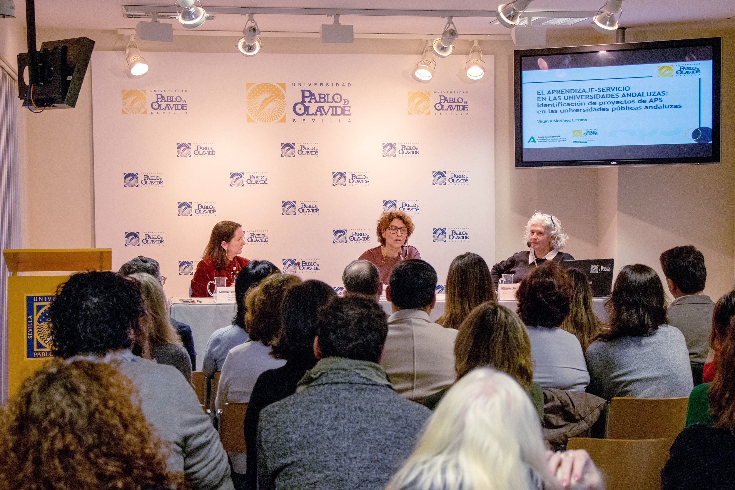 La Universidad Pablo de Olavide ha presentado en la mañana de este miércoles el informe ‘El Aprendizaje-Servicio en las Universidad Andaluzas: Identificación de proyectos de ApS en las universidades públicas andaluzas” un estudio dirigido por la profesora de la UPO, Virginia Martínez Lozano, junto a Inmaculada Sancho Porras y Paula Carmona Álvarez, de la Oficina de Voluntariado y Compromiso Social del Vicerrectorado de Cultura y Políticas Sociales de la UPO, a través del Observatorio Andaluz de Voluntariado, en colaboración con la Secretaría General de Familias, Igualdad, Violencia de Género y Diversidad de la Junta de Andalucía.
